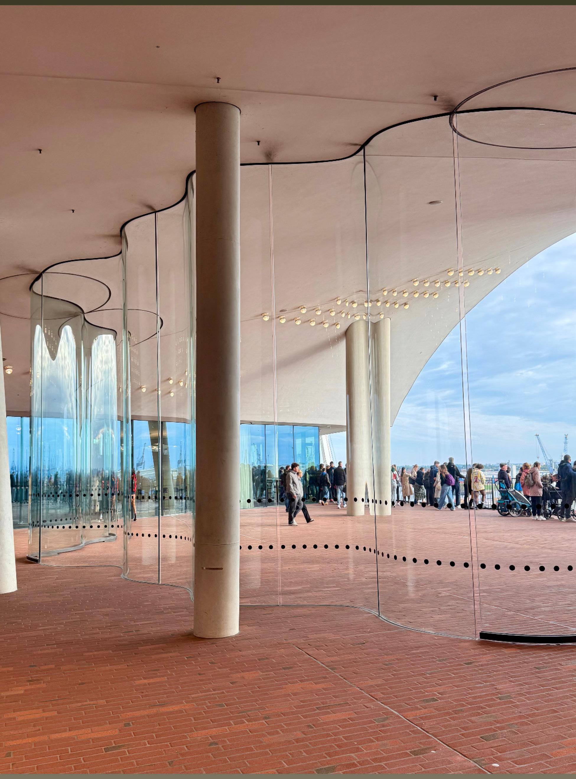 Vorig weekend was het zover: ons team trok vier dagen naar Hamburg en omstreken, op zoek naar inspiratie in een stad waar geschiedenis, water en hedendaagse architectuur in elkaar overvloeien. Onderweg hielden we halt bij enkele projecten die ons pad kruisten — momenten van verwondering nog vóór we Hamburg bereikten en opnieuw op de terugrit, waar architectuur de reis zelf mee vormgaf.